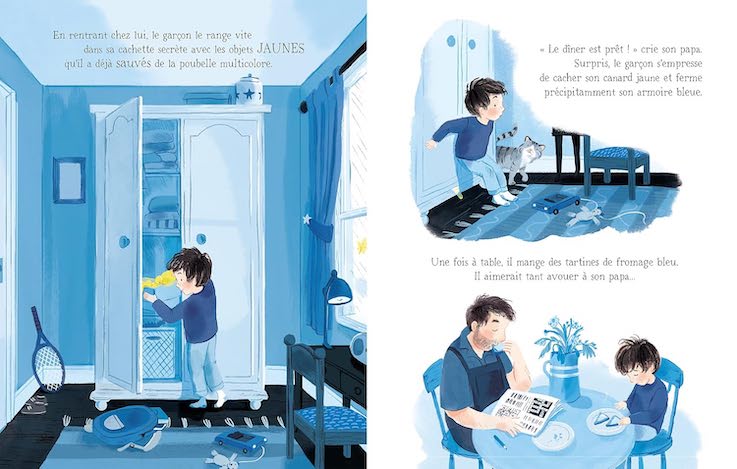 Dans un monde où la loi des couleurs interdit tout ce qui n'est pas bleu, un petit garçon sera-t-il assez courageux pour défier les règles et avouer son amour du JAUNE à son papa?