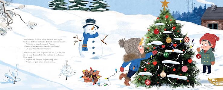 C’est la fin de l’année, Solal et sa sœur Adèle préparent Noël en attendant le retour de leur chat Picpuce, parti faire le tour du monde. Au fil des jours et des pages, les enfants reçoivent des lettres de leur chat, postées du Mexique, d’Éthiopie, d’Australie, de Finlande et de Russie.